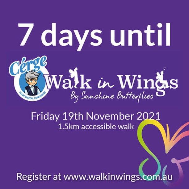 The countdown is on for Sunshine Butterflies ‘Walk in Wings’ event! 🦋💜 Only 7 days to go!! Come and walk with us on Friday 19th November at Noosa river from 6:30-8:30 am, with registration from 6 am. Remember if you register before 12 noon on Wednesday 17th November you will go into the draw to win a Vuly Medium Ultra trampoline (valued at $1,333). Register via the link in our bio. Children under 4 are free!👏 All funds raised support Sunshine Butterflies Disability Charity. 🦋 Bring your friends, family, colleagues, community group and join in the fun! #walkinwings #communityevent #allabilities